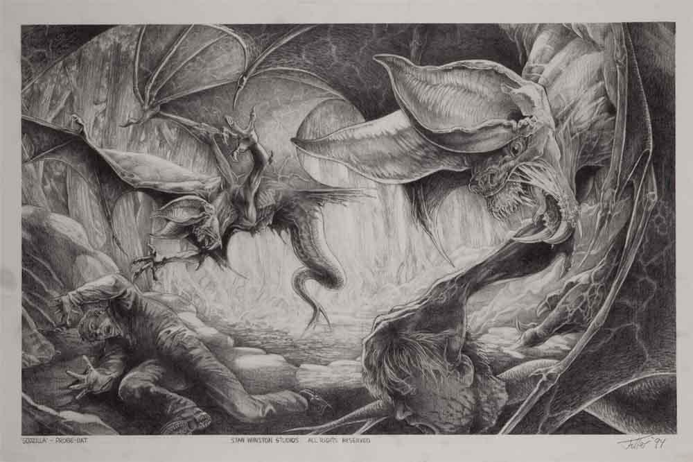 As per series tradition, a key element would be an opponent creature for Godzilla to fight. Originally, the writers wanted to use King Ghidorah in the script — only to find out that they could not. “Our contract specifically stated that we could use any monsters from the Godzilla family of monsters,” Elliott explained, “with the exception of Rodan, Mothra, or King Ghidorah. I’m sure Toho believes they can license those individually, so they didn’t include them in the Godzilla license — so we were left coming up with our own guy” (Ryfle, 1999). The creature was baptized the Gryphon (Elliott & Rossio, 1993).